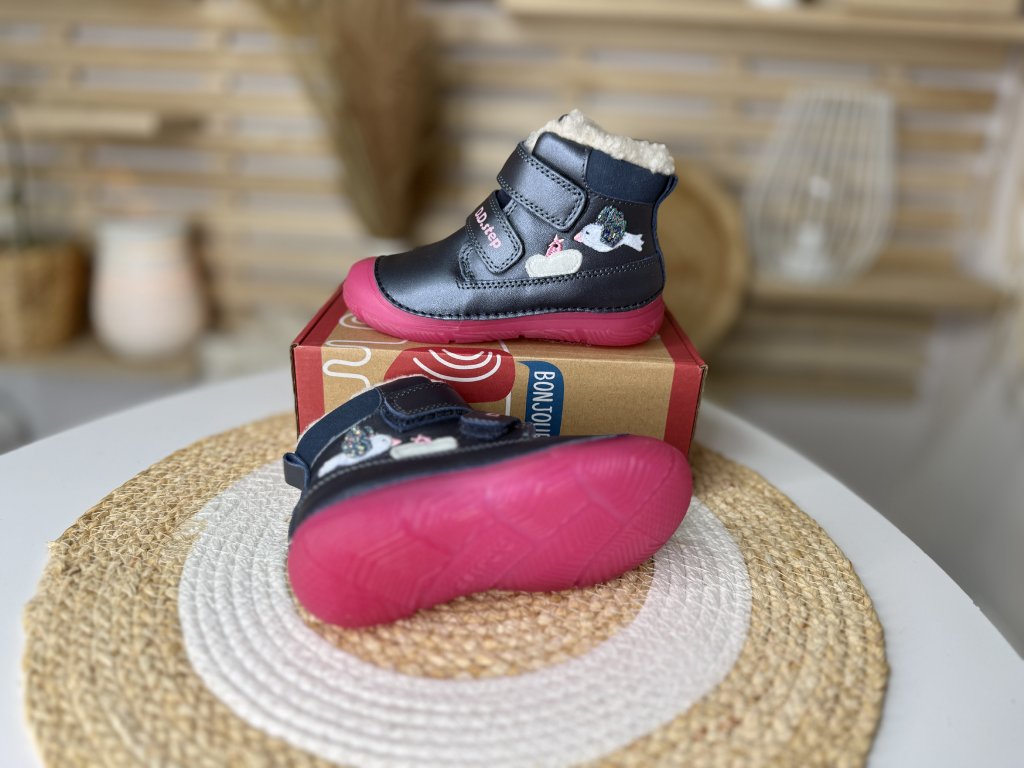 Konstrukce obuvi je navržena tak, aby co nejvíce podpořila přirozený růst dětské nožičky a pohyb chodidla při chůzi a běhu. Boty jsou zateplené kožíškem.