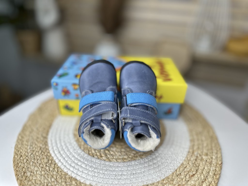 Konstrukce obuvi je navržena tak, aby co nejvíce podpořila přirozený růst dětské nožičky a pohyb chodidla při chůzi a běhu. Obuv je vhodná pro normální až širší nohu s normálním nártem. Má anatomický tvar špičky a je vhodná pro nožku tzv. PLOUTVIČKU. Opatek je měkký. Dětská obuv z hladké kůže s extra lehkou, ohebnou podešví. Kotník se dá lehce dotáhnout, proto sedí i pro užší kotník. Bota je zateplená a krásně hřeje, díky ovčí vlně.