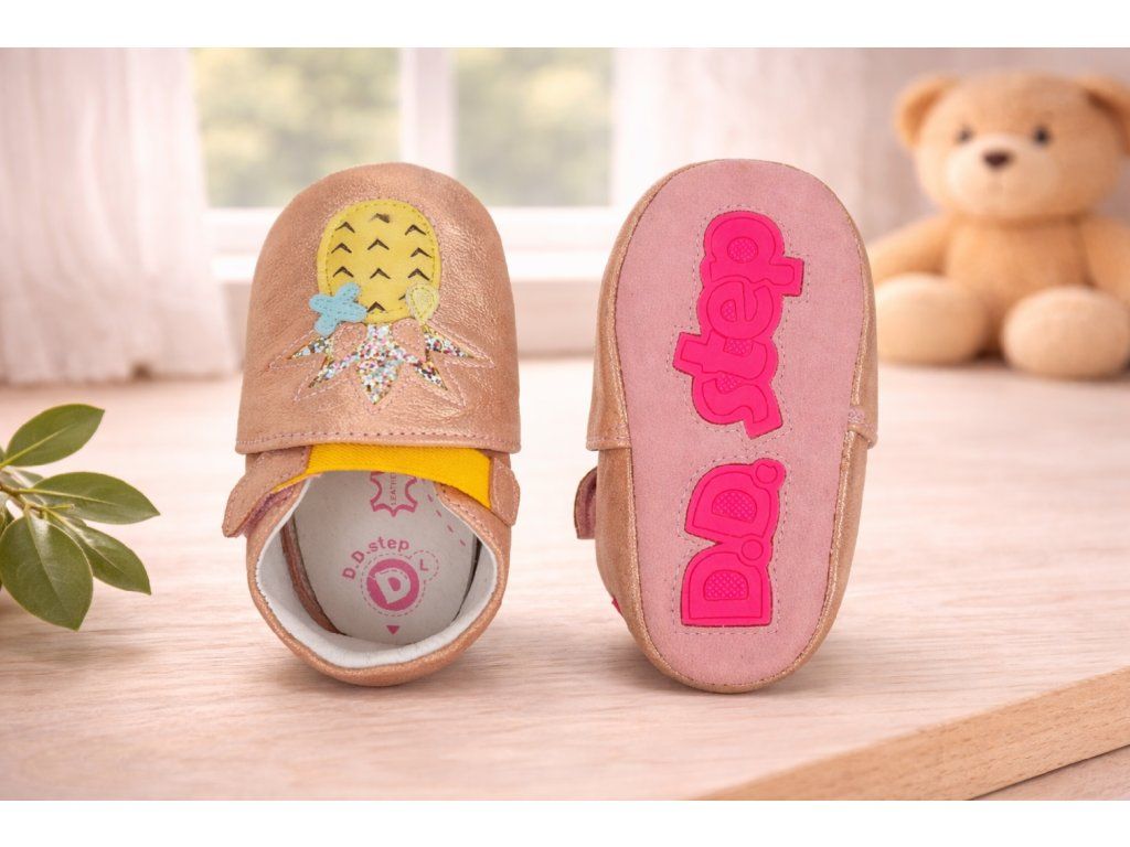- ohebné měkké kožené podešve s protikluzem ve tvaru loga