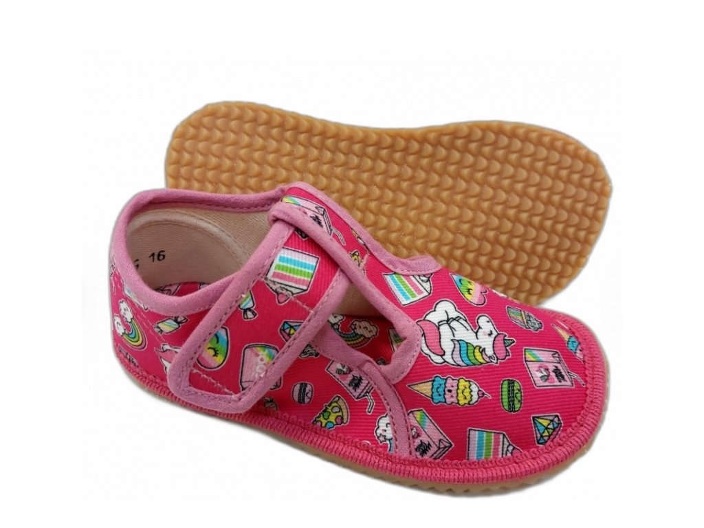 Barefoot papučky české značky HP Čechtín jsou vhodné pro děti do školky, školy i na doma. Mají upravenou prstovou část pro pocit bosé nohy, zejména v oblasti palce. Svršek i podšívka jsou z prodyšné bavlny, pata je mírně vyztužená pro lepší stabilitu.