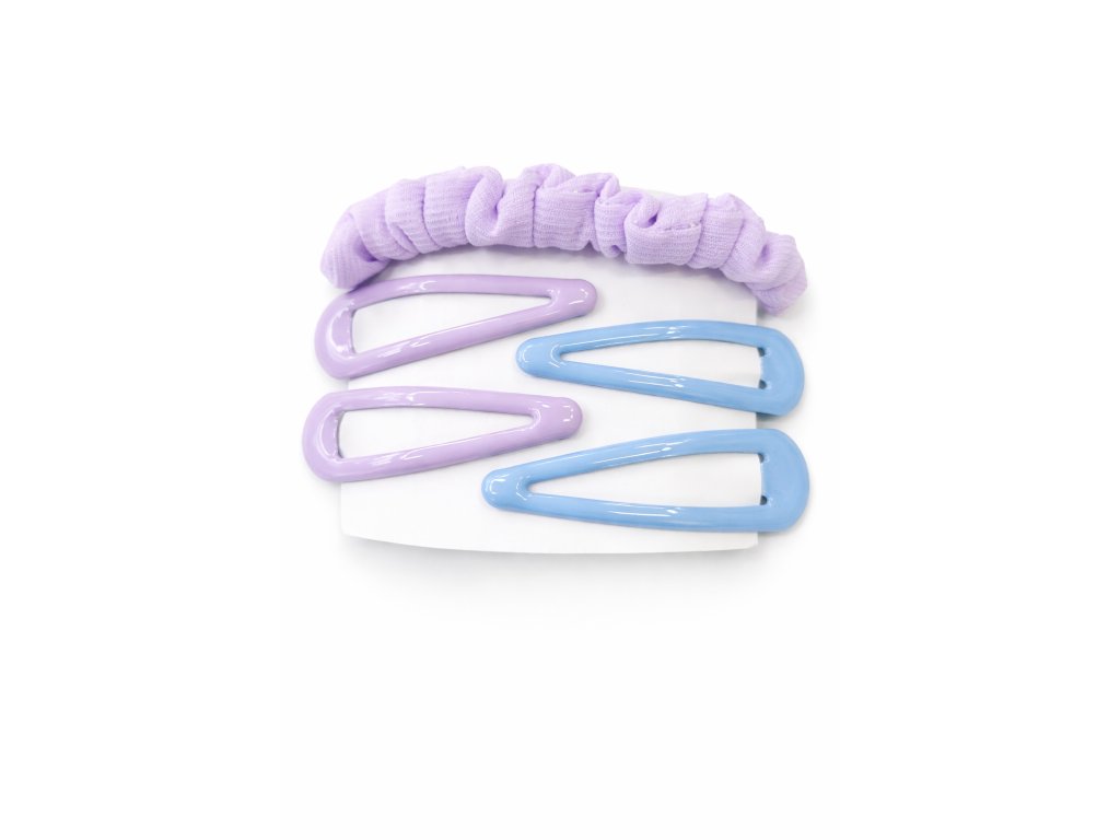 Balíček spojuje klasické cvakací sponky s hebkou gumičkou do vlasů. Pastelové odstíny vytváří harmonický celek, který se hodí ke každému outfitu. Doplňky jsou lehké, pohodlné a vhodné pro každodenní nošení bez tahání vlasů.