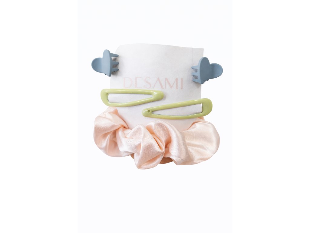 Balíček spojuje klasické cvakací sponky s hebkou gumičkou do vlasů. Pastelové odstíny vytváří harmonický celek, který se hodí ke každému outfitu. Doplňky jsou lehké, pohodlné a vhodné pro každodenní nošení bez tahání vlasů.