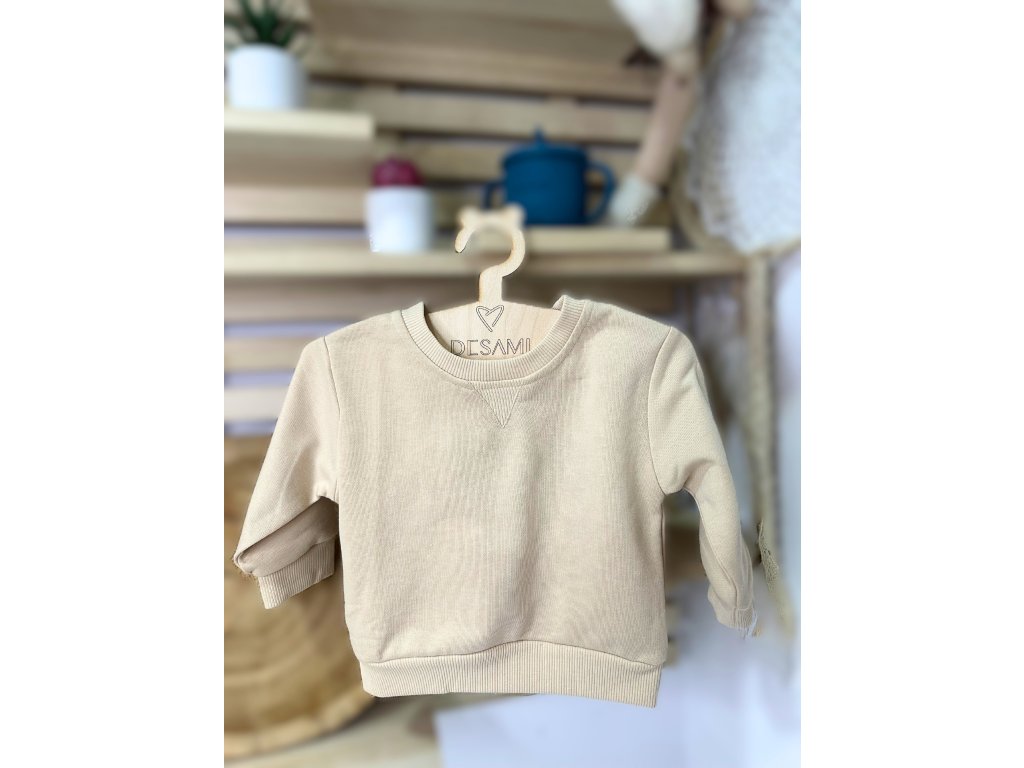Pohodlná žebrovaná mikina v neutrální béžové barvě, ideální pro každodenní nošení.