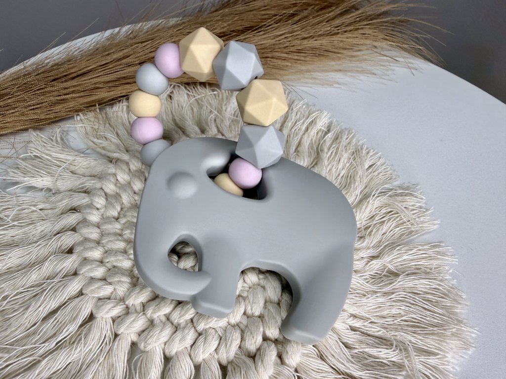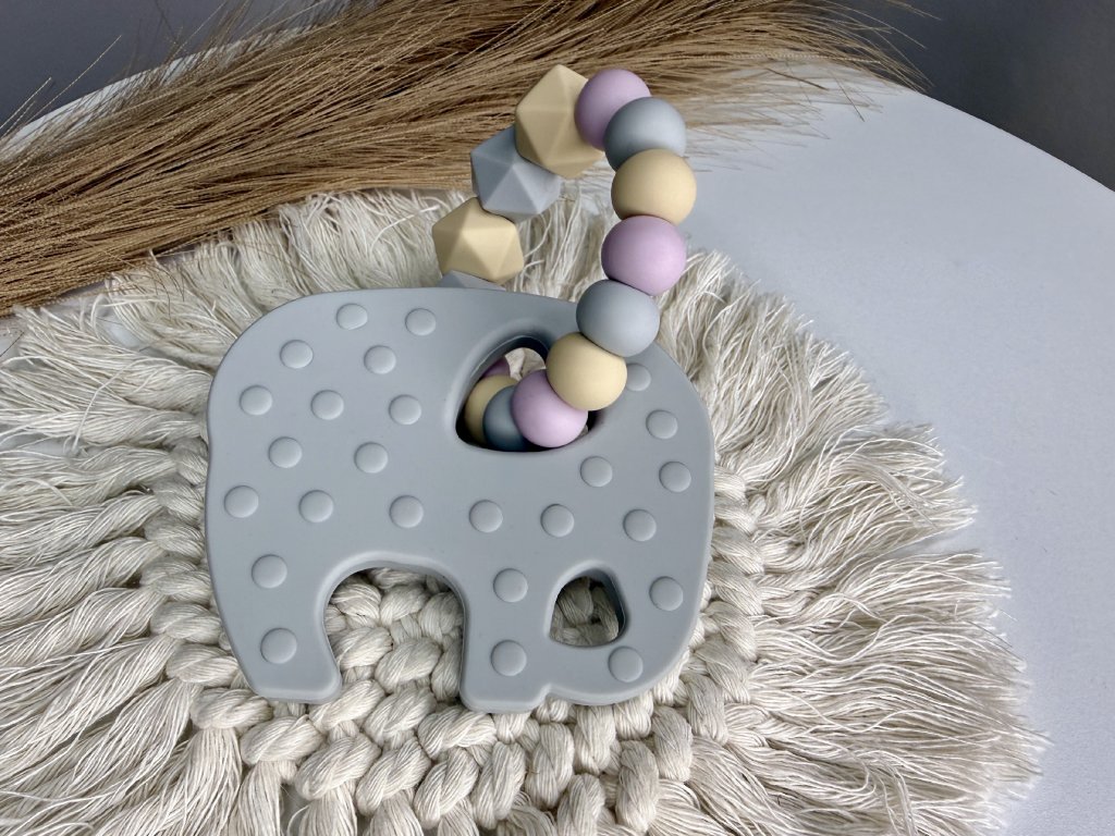 Desami Silikonové Kousátko Slon Šedé s fialovou