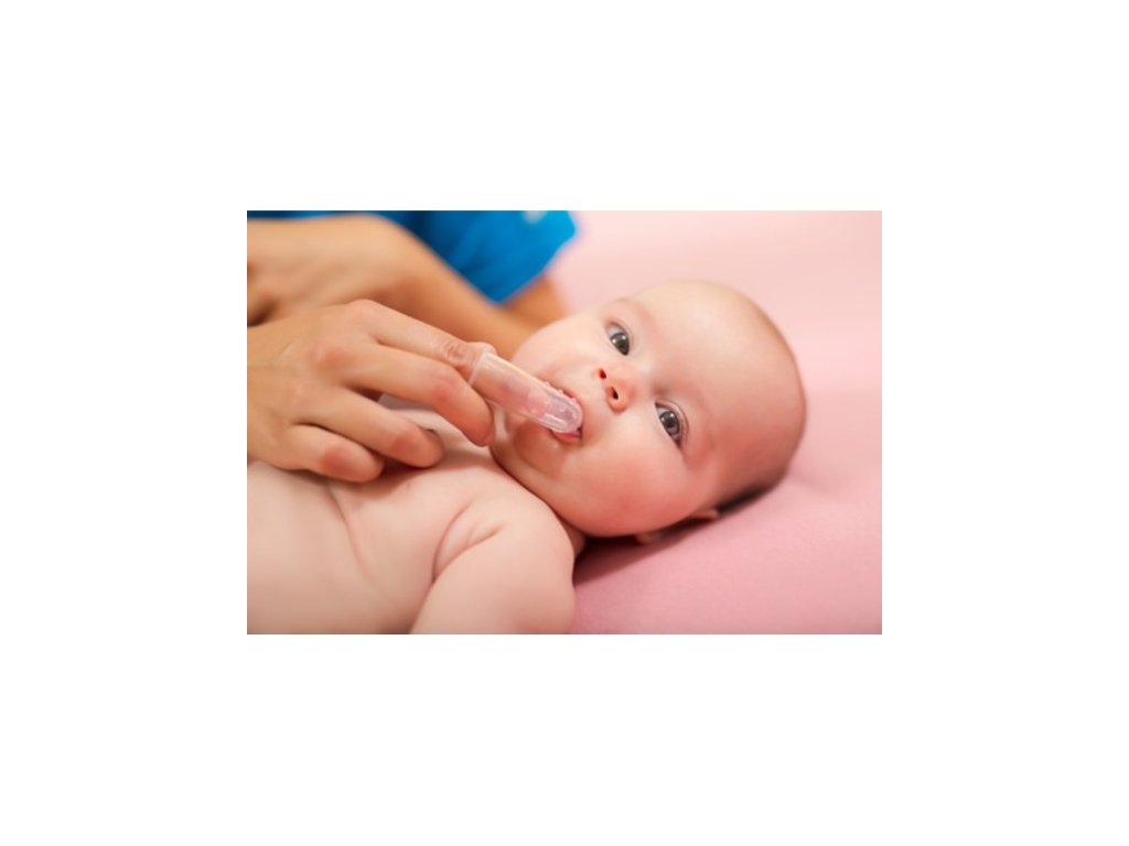 Kartáček navlékněte na ukazováček a jemně čistěte a masírujte dásně.